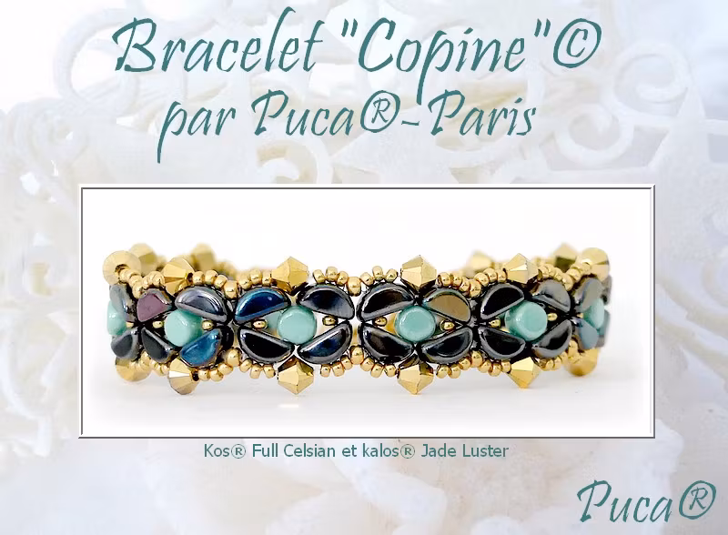 Hem › Gratis Mönster › Armband › Copine Armband PDF Copine Armband PDF I lager. 0 kr 0 kr Köp Den här materiallistan har klickbar text, med länk till angiven pärla/produkt.Mönsterskapare: PucaMaterial: For a 17 cm bracelet52 Kos par Puca®14 Kalos par Puca®44 Biconer 4mmMiyuki Seedbead 15/0Miyuki Seedbead 11/02 Miyuki Seedbead 8/01 Lås enradigt2 Bindringar 4mmNål och Tråd (läs mer om bästa val inne på kategorin)Mönstret är på engelskaHandla pärlor för 150kr och du får detta mönster gratis