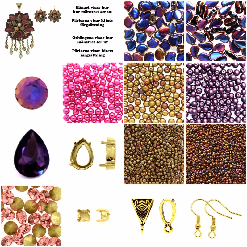 Lila/Rosa/Iris Padrugi Hänge och Örhängen Kit (EJ MÖNSTER ENDAST PÄRLOR)