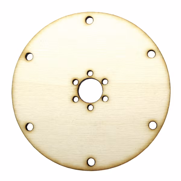 Finns ett stort hål i mitten, 6st små hål runt det stora hålet. 6 stycken hål närmre kanten på "kulan".