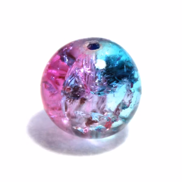 Rosa/Turkos Krackelerad Glaspärla Rund 16mm 1st
