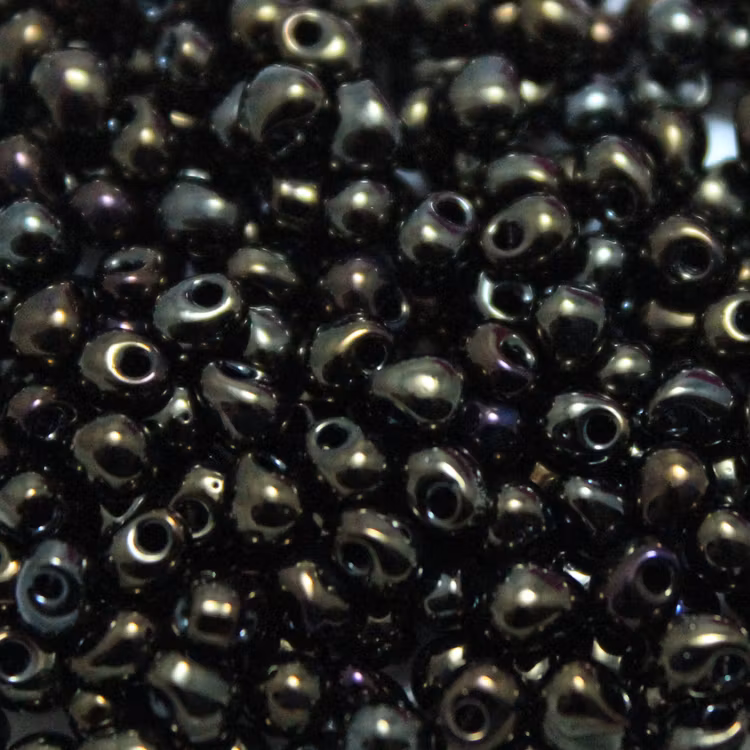 Pärlorna är ca. 3,4 mm på bredden, och väldigt jämna i storleken. På 10g går det ca 180 pärlor.