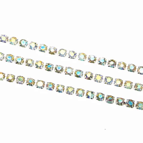 Crystal AB Silverfärgad metall Strasskedja 2mm 10cm