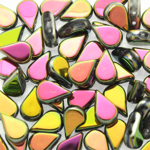 Pärlorna mäter ca. 5x8 mm. 5g motsvarar ca 26 pärlor. Pärlan har två hål.