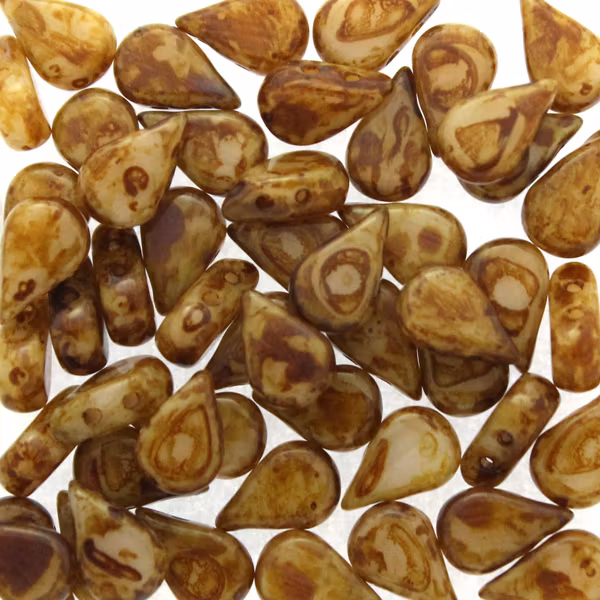 Pärlorna mäter ca. 5x8 mm. 5g motsvarar ca 26 pärlor. Pärlan har två hål.