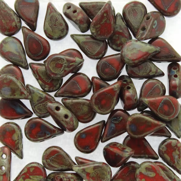 Pärlorna mäter ca. 5x8 mm. 5g motsvarar ca 26 pärlor. Pärlan har två hål.