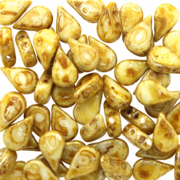 Pärlorna mäter ca. 5x8 mm. 5g motsvarar ca 26 pärlor. Pärlan har två hål.