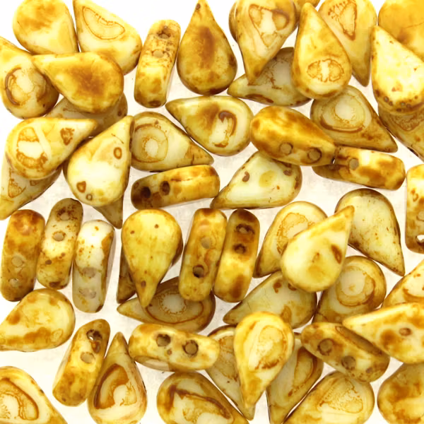 Pärlorna mäter ca. 5x8 mm. 5g motsvarar ca 26 pärlor. Pärlan har två hål.