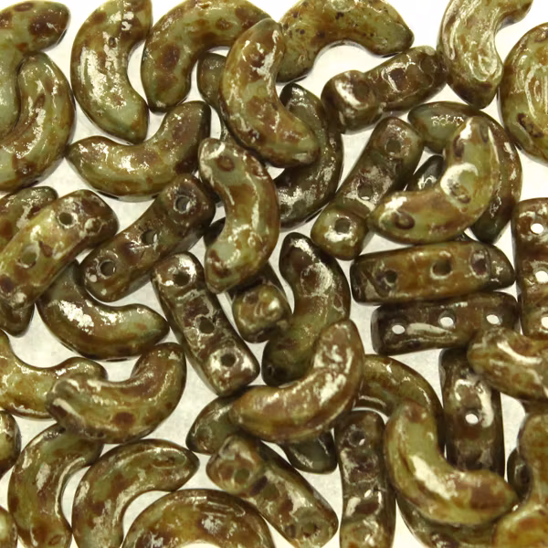Pärlorna mäter ca. 5x10 mm. 5g motsvarar ca 22 pärlor. Pärlan har tre hål.