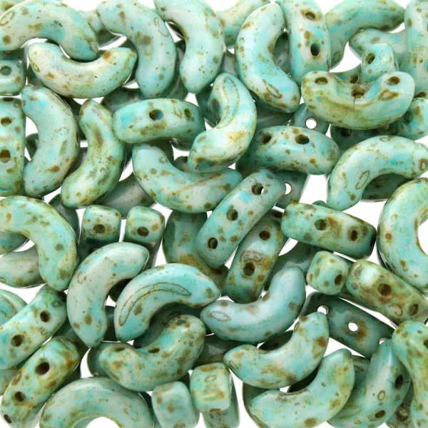 Pärlorna mäter ca. 5x10 mm. 5g motsvarar ca 22 pärlor. Pärlan har tre hål.