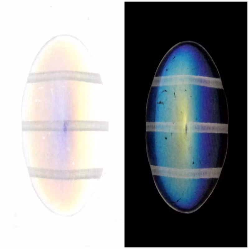 Pärlorna mäter ca. 20x10x6 mm. Pärlan har tre hål.