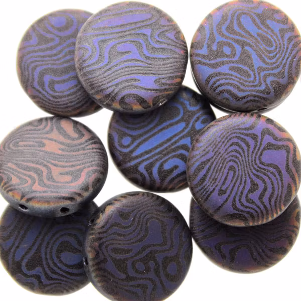 Jet/Sliperit Mat Laser Contour Coin 2-hole 14mm 2st