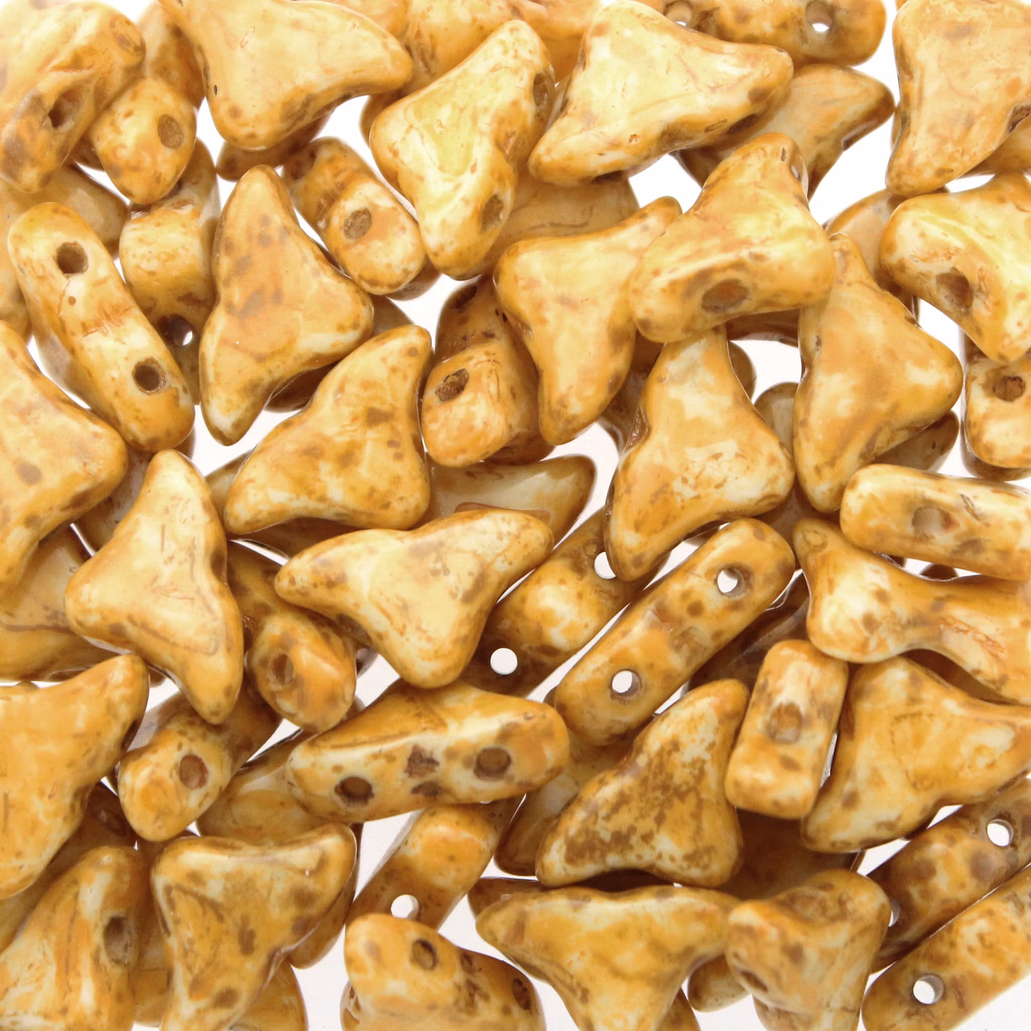Pärlorna mäter ca. 6x10 mm. 5g motsvarar ca 20 pärlor. Pärlan har två hål.