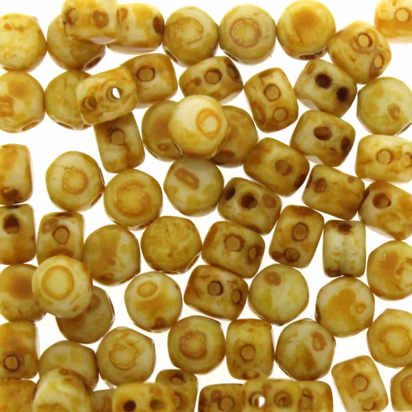 Pärlorna mäter ca. 4x3 mm. 5g motsvarar ca 64 pärlor. Pärlan har två hål.