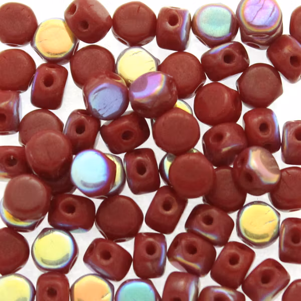Pärlorna mäter ca. 4x3 mm. 5g motsvarar ca 64 pärlor. Pärlan har två hål.
