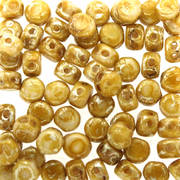 Pärlorna mäter ca. 4x3 mm. 5g motsvarar ca 64 pärlor. Pärlan har två hål.