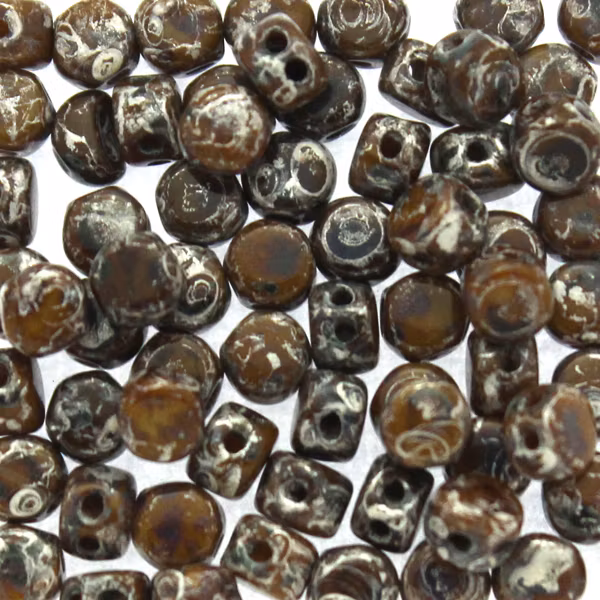 Pärlorna mäter ca. 4x3 mm. 5g motsvarar ca 64 pärlor. Pärlan har två hål.