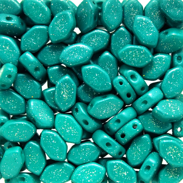 Pärlorna mäter ca. 4x7 mm. 5g motsvarar ca 27 pärlor. Pärlan har två hål.