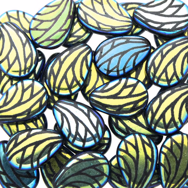 Pärlorna mäter ca. 9x11 mm. 5g motsvarar ca 11 pärlor. Pärlan har ett hål.