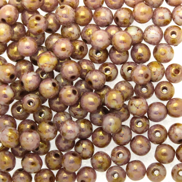 Opaque White Bronze Picasso Runda/Druks 4mm 100st